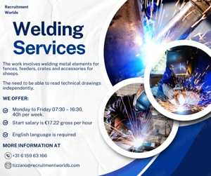 JOBS IN THE NETHERLANDS Starting time as soon as possible! Accommodation provided Company car provided for commuting to work. It is possible to apply with CV in English.