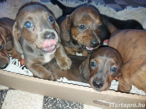Január 15-től elvihetők oltott, féregtelenített tacskók, cser fekete, harlekin, kék felmenőkkel. November 19-én születtek