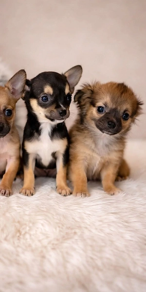11 hetes csivava kölykök! Oltva, parazitamentesen, számlával és adásvételi szerződéssel vihetők el. Két hosszú szőrű vörös kisfiú, valamint egy tricolor fekete-barna-fehér színú kisfiú várja szerető gazdáját. Barátságosak, játékosak, családba valók.