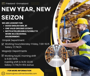 WORK IN NETHERLANDS!! 2026.01.05.-tól keresünk új és lelkes munkavállalókat a jövő évi frissen induló szezonra. Amit várunk: Jó fizikai állóképesség Csapatmunkára való nyitottság Pontos, felelősségteljes hozzáállás Mit kinálunk: Stabil, rendezett munkakörnyezet Korrekt feltételek Hosszú távú ...