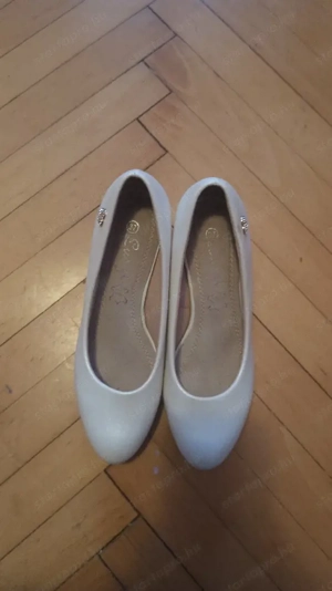 Fehér magssarku cipő egyszer használt jó álapotu fehér csillogós elvihető 37- es méretben.